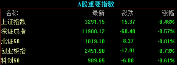截至收盘,沪指跌0.46%,深成指跌0.57%,创业板指跌0.73%。