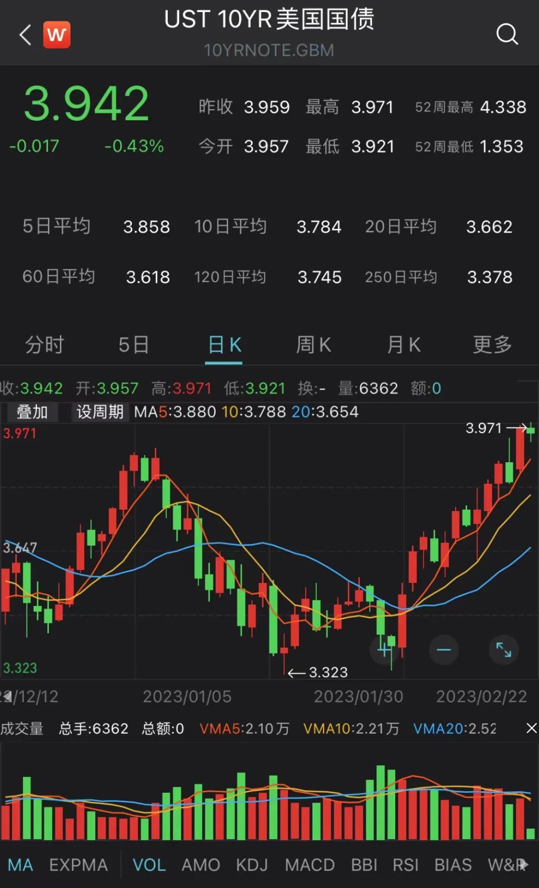 从消息面上来看,10年期国债收益率今天最高升至3.971%,创去年11月以来新高。